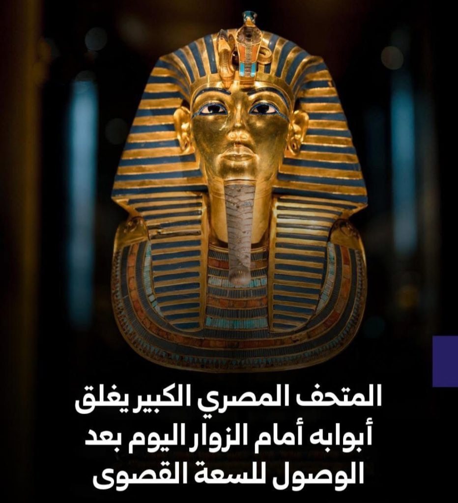أعلن المتحف المصري الكبير، اليوم الجمعة، غلق أبوابه أمام الزوار ليوم واحد فقط، وذلك بعد نفاد جميع التذاكر المخصصة لهذا اليوم ووصول أعداد الزائرين إلى السعة التشغيلية القصوى للمتحف.