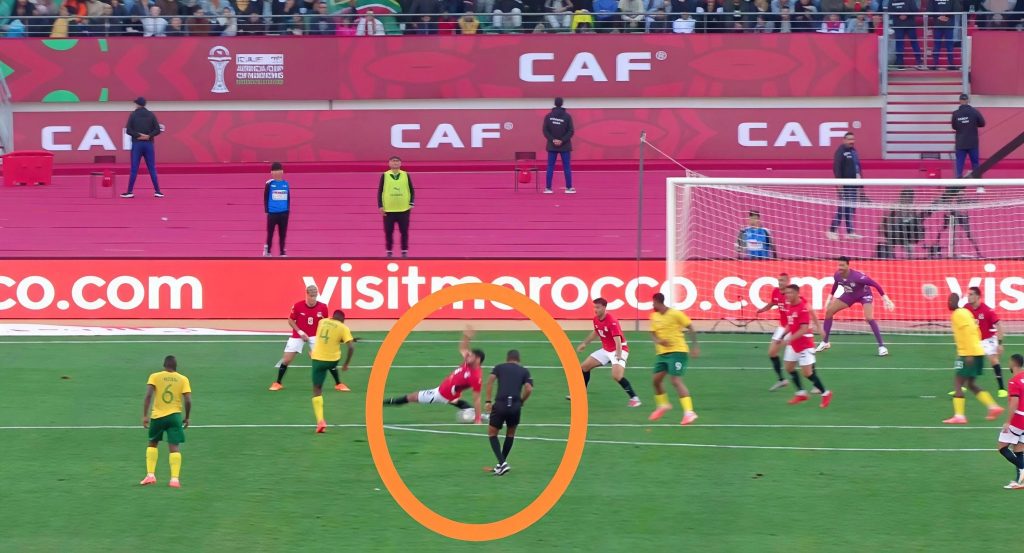 الحكم بعد العودة للفيديو أنها يقين من داخل منطقة الجزاء لغى اللعبه بالكامل لأنها يد داعمة في فضيحة تحكيمية كامل تفاصيلها فضيحة مكتملة الأركان.