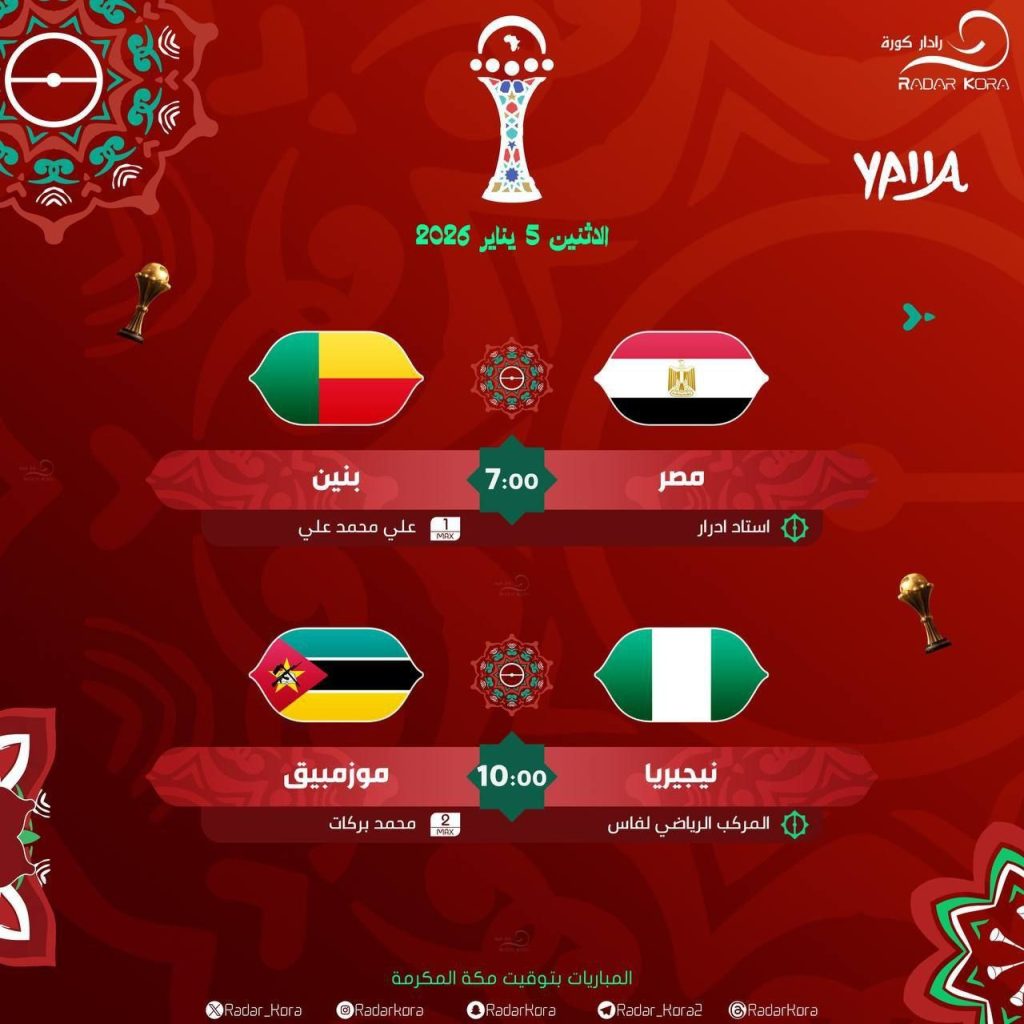 مصر × بنين: الفائز يواجه المنتصر من ساحل العاج × بوركينا فاسو.